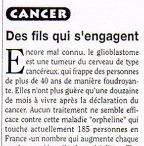 Atteint d’une tumeur cérébrale, le glioblastome, diagnostiquée en Octobre 2000, pour laquelle il a fait preuve d’un énorme courage malgré de lourdes séquelles suite à l’opération. Il a transmis une leçon de vie à tous ceux qu’il a rencontré durant les 6 derniers mois de sa vie.
